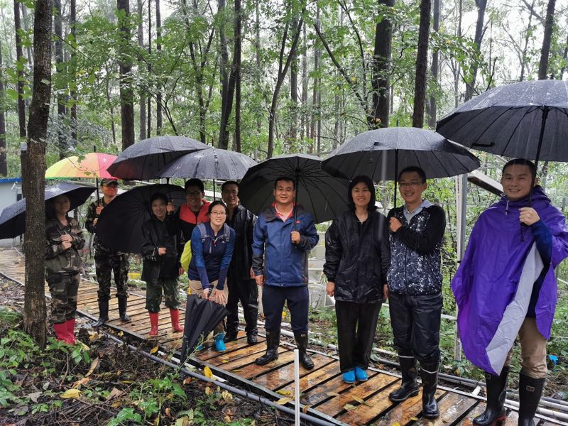 9月7日,受台风天气影响,沈阳和清原迎来一场暴雨,但却丝毫未影响来访专家们野外考察的工作热情。在方运霆研究员的带领下,专家们先后参观了森林野外增温试验平台、水文梯度平台和塔群平台。专家们认真听取了陪同人员对各个平台实验设计、监测仪器运行等情况的介绍。专家们对清原站开展的野外工作给予充分肯定,积极与陪同人员在样地现场进行讨论,并对相关实验的布置提出建设性意见。当晚,专家们又听取了增温平台工作进展报告,包括平台建设历史和初步结果等,现场讨论热烈。