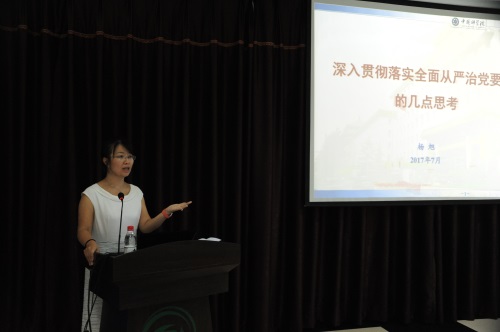 当日下午举办的2017年基层党建工作培训交流观摩会由所党委书记金昌杰同志主持。杨旭主任作《深入贯彻落实全面从严治党要求的几点思考》的报告,她从“了解全面从严治党的提出”、“把握全面从严治党的内涵”、“突出全面从严治党的重点”三个方面论述了全面从严治党的要点,提出了全院从严治党的具体举措和思考,就如何加强思想建设介绍了经验。随后,姬兰柱书记作题为《讲奉献有作为——做一名合格党务工作者》的报告,从“责任担当是共产党员的基本素质”、“当前形势为什么也要强调责任担当”、“实践中落实党务工作者责任担当”三个方面回答了什么是担当、为什么要担当、如何担当的问题。