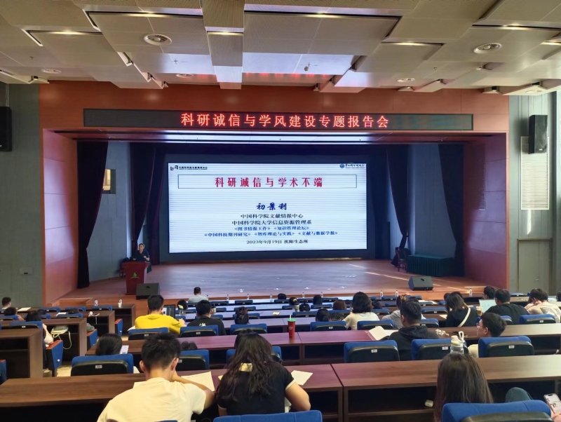 9月19日,沈阳生态所举办科研诚信和学风建设专题报告会,会议邀请中国科学院文献情报中心学术委员会主任、中国科学院大学信息资源管理系主任、《图书情报工作》杂志社社长初景利教授作科研诚信和学风建设专题报告。所党委副书记、纪委书记郝欣、学术委员会成员、部分管理部门负责人、科研人员以及研究生150余人参加了报告会。报告会由党群办主任、纪委副书记胡志斌主持。