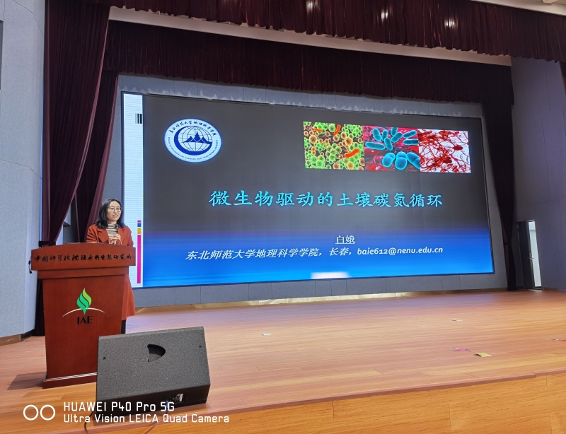 会上,白娥教授以“微生物驱动的土壤碳氮循环”为题,从“土壤有机质的稳定性”、“土壤微生物碳的全球格局”、“土壤微生物与植物凋落物”等多个方面进行了详细地介绍。
