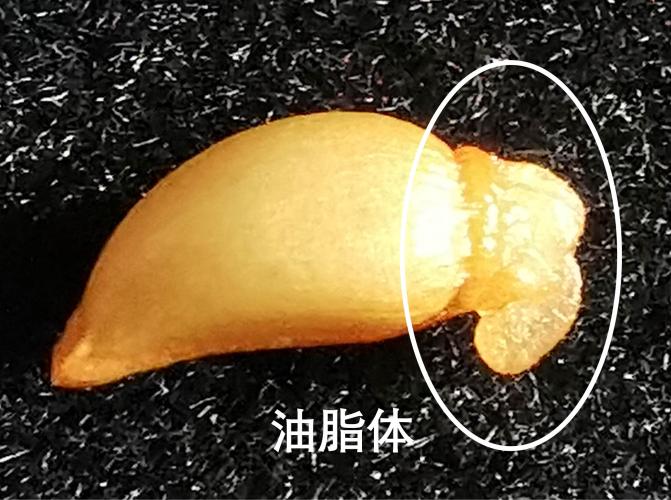 猪牙花的种子和上面的油脂体(湾沟林业局 于永波 供图)