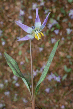 俯身细看,六枚尖尖的花瓣正以“狂野”的姿态向上翻卷,在寒意料峭的春风中翩然舞动。那段传颂在歌词中的独白,原是出自这位“野百合”——猪牙花(Erythronium japonicum Decne.),百合科(Liliaceae)猪牙花属(Erythronium)的多年生草本植物。