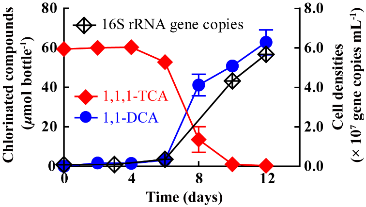 图3. 1,1,1-三氯乙烷脱氯过程紧密耦合T菌株的生长
