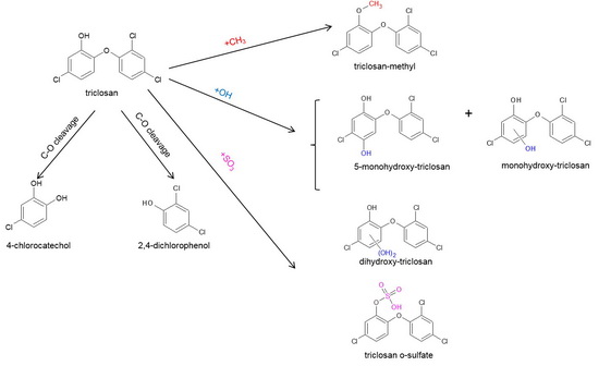 三氯生作为一种广谱抗菌,在许多日常生活用品,例如药品、清洁护肤品、儿童玩具和医疗用品中有着广泛的应用。三氯生被归类为新兴污染物的一种,几乎能在从水生到陆生生态系统中的所有介质中被检出,其污染对自然环境和人类健康都带来极大的影响。该团队围绕三氯生在不同环境介质中存在的状况以及潜在的生物暴露风险,针对三氯生在厌氧条件下、水生生态环境中、肠道环境中以及土壤环境中的迁移、降解和转化等环境行为进行了研究,系统深入的揭示三氯生的降解和转化途径以及相关的微生物学机制,并阐明可能引起的毒理效应及暴露风险。研究表明,三氯生在厌氧培养条件下首先发生还原性脱氯反应,这可能是三氯生在厌氧条件下一种新的降解途径,对于三氯生脱氯产物的结构鉴定目前正在进行中;水生生态环境中三氯生对水芙蓉、水葫芦和斑马鱼这些水生动植物均表现出一定的毒性作用;土壤环境中,土壤有机质能够增加土壤对三氯生的截留,其程度随土壤有机质含量的增加而增加,相关机制仍在调查中。