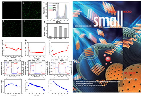 黒磷不仅在电子以及光电子领域领域备受青睐,它在生物医学领域也有突出的表现和广阔的应用前景。黒磷在光热和光动力治疗各种癌症(例如:乳腺癌、宫颈癌和胶质瘤)表现出巨大的潜力。此外,它还能作为一个高效的癌症治疗药物的运输载体。因此,深入地了解黒磷的细胞毒性至关重要。该团队与美国麻省大学邢宝山课题组合作,对黒磷的细胞毒性进行了系统的研究。利用化学气相沉积法合成高结晶质量的黒磷单晶,采用水相剥离的方法获得不同横向尺寸和厚度的黒磷薄片用于细胞毒性研究,实时细胞分析的结果表明,黒磷薄片的浓度和尺寸对不同类型的细胞的毒性存在显著差异,细胞毒性来源于细胞内的活性氧生成和细胞膜的破坏,但只有后者与黒磷薄片的尺寸大小有关。由此可见,黒磷引发细胞失活的机制是异常复杂的,需要更为深入的研究。