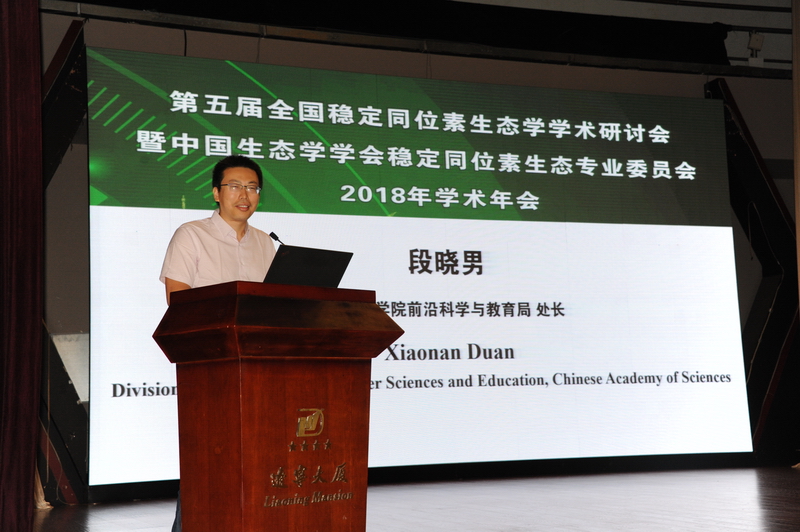 段晓男代表中国科学院致辞,他简单回顾了稳定同位素技术的发展历程及其在不同学科的应用,他希望参会专家关注前沿研究手段,不断完善和创新稳定同位素技术和研究方法。