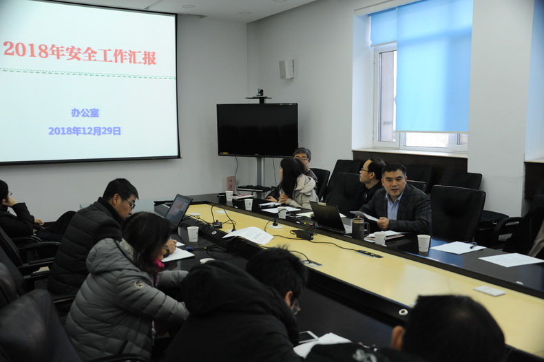 首先,胡志斌作2018年安全工作汇报。他从组织保障、责任体系建设、制度体系建设、应急体系建设、安全教育培训、日常管理(三防能力、消防管理、消防安全、用电安全、特种设备、监控系统、食堂安全、信访维稳)、科研生产安全(实验室安全管理、危化品安全管理、气瓶安全管理)、野外站安全管理、信息安全、重要安保工作等方面总结了2018年工作成绩,指出存在的问题,并对近期工作进行了部署。他要求所有安全管理工作小组成员切实履职履责、落实“一岗双责“,把安全责任落到实处,防范各类安全事故。