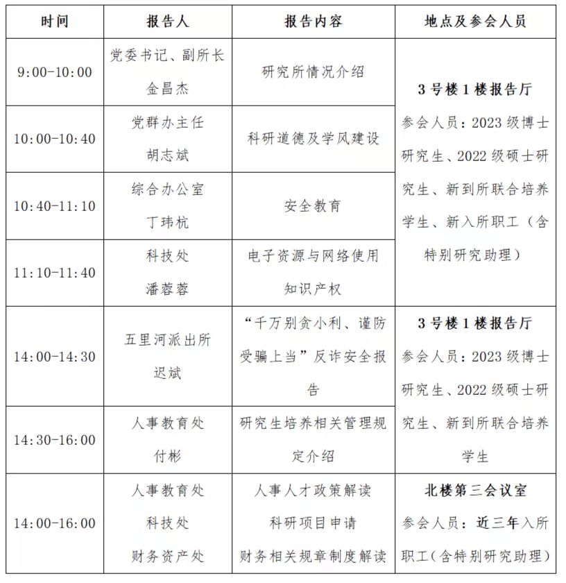 三、参加人员:2023级博士研究生、2022级硕士研究生、新到所联合培养学生、新入所职工(含特别研究助理)
