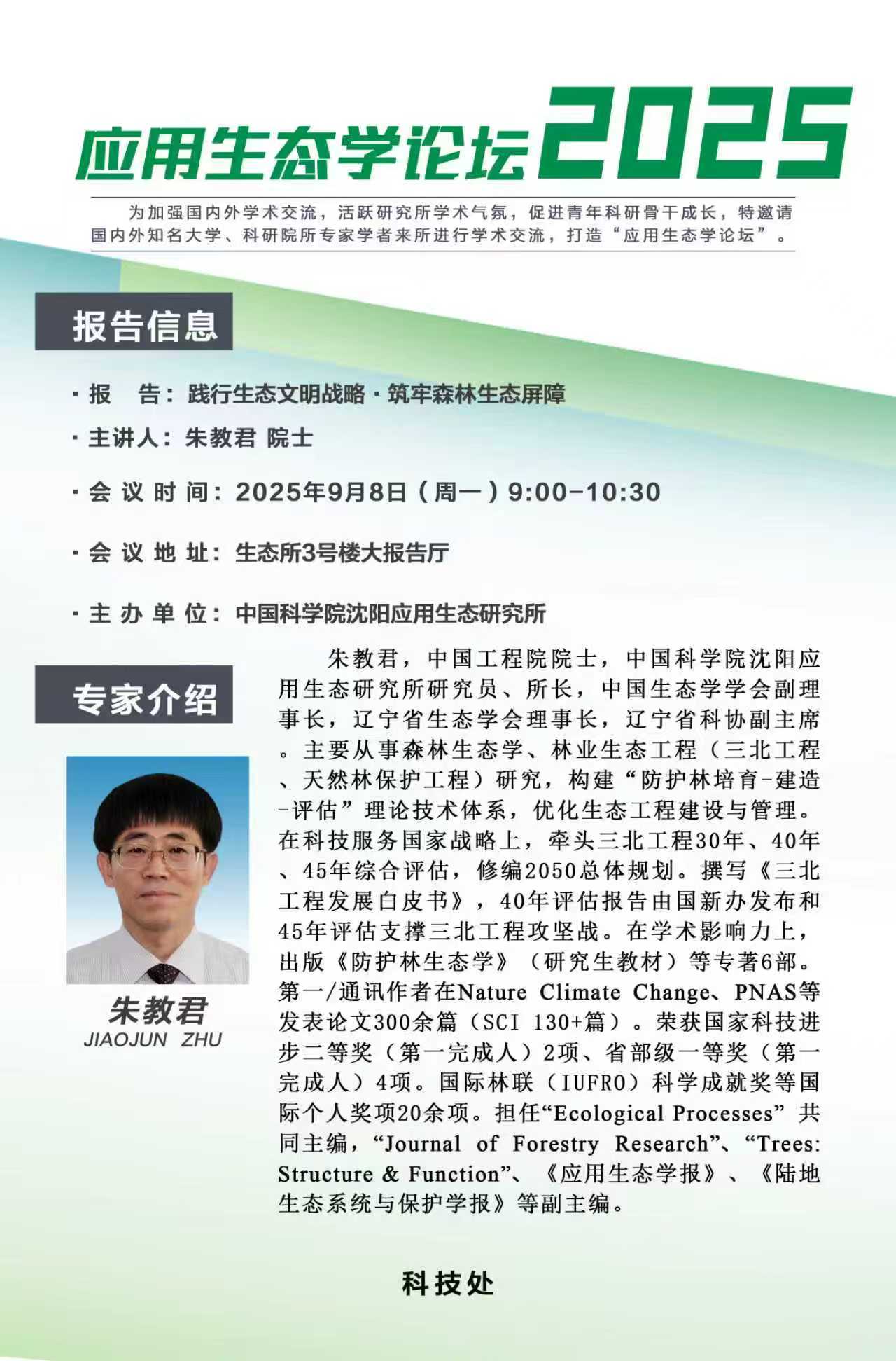 为进一步加强国内外学术交流,扩展科研人员知识面,促进青年科研骨干成长,提高研究所人员整体科学研究水平,2025年 “应用生态学论坛”系列活动全新升级。欢迎广大科研工作人员及研究生积极参与!