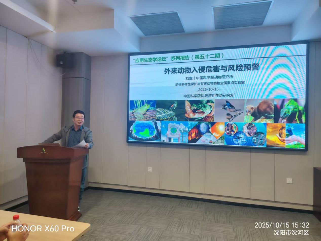 2025年10月15日,中国科学院沈阳应用生态研究所成功举办第五十二期“应用生态学论坛”。本期论坛特邀中国科学院动物研究所刘宣研究员担任主讲嘉宾,围绕“外来两栖动物入侵危害与风险预警”展开专题报告,吸引了所内外30余名科研人员参与。吕晓涛研究员主持活动。