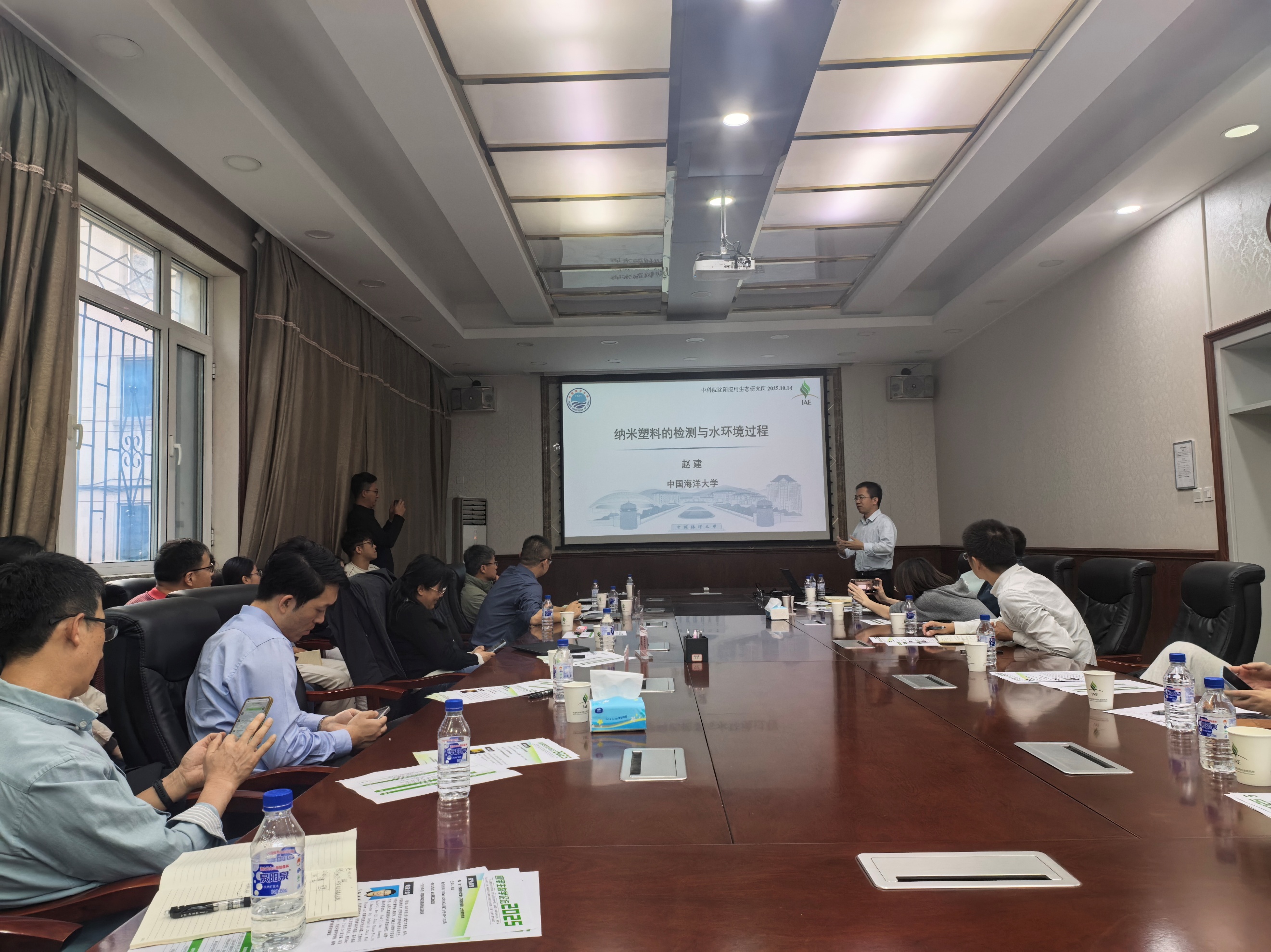 赵建教授以“纳米塑料的检测与水环境过程”为题进行报告。赵教授指出,纳米塑料已严重威胁生态系统平衡和人类健康,但复杂生物样本中,特别是海洋环境中的纳米塑料准确识别与定量仍面临巨大挑战。报告首先梳理了当前纳米塑料主要检测方法的优缺点与适用范畴,随后重点介绍团队基于热裂解-气相色谱/质谱与纳米粒子追踪分析联合应用的创新型纳米料检测方法,最后强调未来研究亟需建立标准化的检测方法,并深入开展其在真实水环境多介质界面的迁移转化规律及长期生态效应评估。