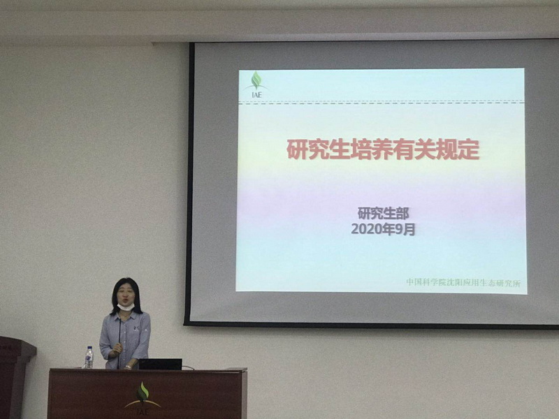 9月8日,中国科学院沈阳应用生态研究所举办2020年研究生开学典礼暨入所教育活动,新入所研究生、新职工共100余人参加了本次活动。活动由研究生部主任付彬主持,她对全体新同学及新职工的到来表示热烈的欢迎。