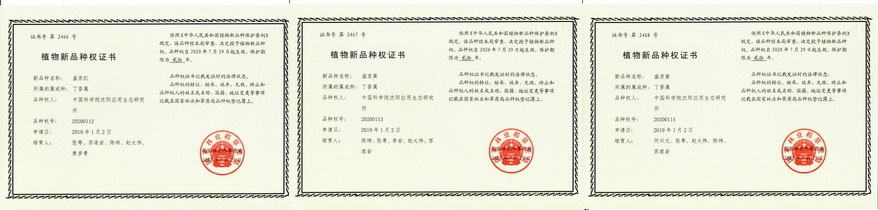 在我所树木园主任何兴元研究员等多名科研人员的共同努力下,我所选育的紫丁香新品种“盛京黄”、“盛京红”和“盛京紫”近日获得国家林业和草原局颁发的植物新品种权证书。