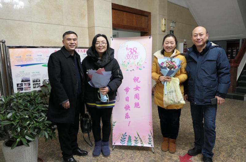 3月8日早晨,党委书记金昌杰同志、党群办主任胡志斌同志、工会副主席孙雨同志在办公楼前迎接女职工到岗。一束束鲜花送给了最美女神,一句句暖心问候带去真挚的节日祝福。