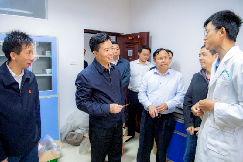 黎春秋一行参观了会同站实验室,查看了设施建设情况,听取了会同站科研监测服务工作汇报,了解了会同站参与建设的湖南省林副产品质量监督检验中心的筹建情况及以后工作方向,询问了学生在站工作学习生活情况并给予热情关怀。