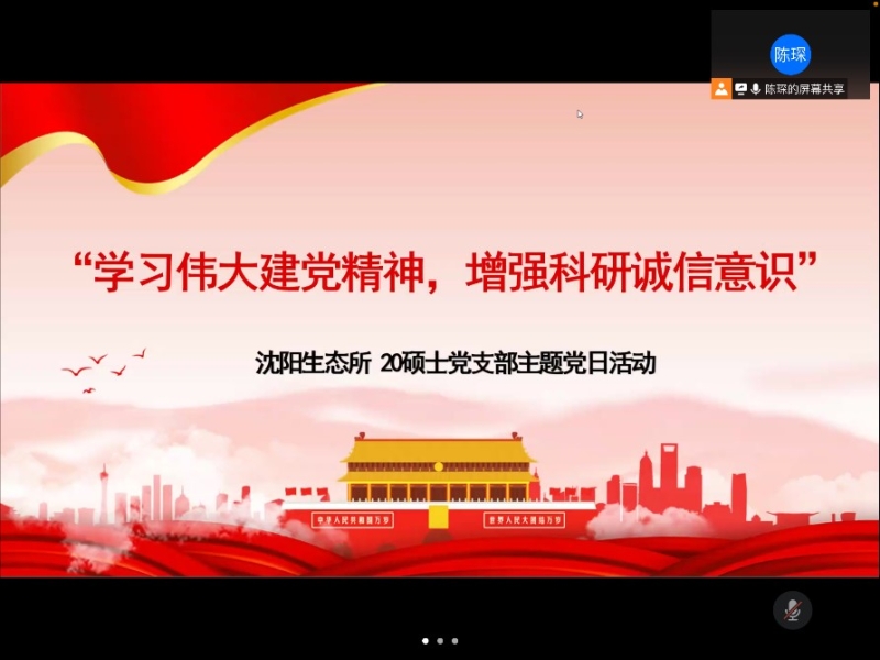 2021年10月18日,沈阳应用生态研究所2020硕士党支部通过“腾讯会议”的线上学习形式,开展了“学习伟大建党精神,增强科研诚信意识”主题党日活动。2020硕士党支部共划分为3个党小组,在本次活动中,采取了党小组内部先学习讨论,支部活动后分享的学习模式。支部全体党员以及部分发展对象、积极分子、入党申请人通过线上参会,支部书记陈琛主持会议。