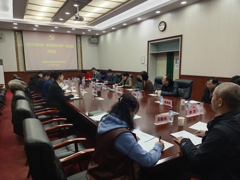 根据中国科学院党史学习教育领导小组《关于做好党史学习教育和“我为群众办实事”实践活动评估工作的通知》(直党字[2021]38号)要求,2022年1月4日,院党史学习教育第十三指导组组长姬兰柱,沈阳分院分党组副书记毛志远,党群工作处副处长(主持工作)刘旭东,党群工作处李博文到我所开展党史学习教育和“我为群众办实事”实践活动评估工作。我所党委书记、副所长金昌杰,党委副书记、纪委书记郝欣,党群办公室主任、纪委副书记胡志斌,党支部书记代表,以及党群办公室有关人员参加了评估工作。