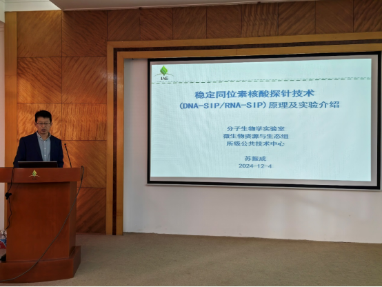 4日上午,全体学员在生态所一号楼四楼报告厅参加技术理论讲解培训。微生物资源与生态组组长徐明恺研究员与会并致辞, 对分子生物学实验室的工作予以充分肯定并进行了简要介绍。培训由张致淳、李想、李旭、李潼和苏振成五位讲师分别就动物细胞培养技术,荧光定量PCR技术,磷脂脂肪酸分析(PLFA)技术,扫描电镜成像与能谱分析及样品制备技术以及稳定同位素核酸探针技术(DNA-SIP和RNA-SIP)进行系统全面讲解。4日下午和5日,全体学员共分成六个小组,分别在分子生物学实验室的五个房间进行五项实验技术的实操或演示,并在培训课间参观其他实验室,了解实验室及仪器设备的基本功能。