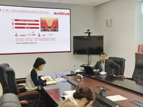 为深入学习二十届中央纪委四次全会精神,贯彻习近平总书记关坚持用改革精神和严的标准管党治党、坚决打好反腐败斗争攻坚战持久战总体战重要讲话精神,1月23日,管理党支部召开党员大会,党委书记金昌杰作“二十届中央纪委四次全会精神”专题党课报告,学习贯彻习近平总书记在二十届中央纪委四次全会上的重要讲话精神和全会公报精神。管理支部党员近30人参加学习,会议由支部书记宗文君主持。