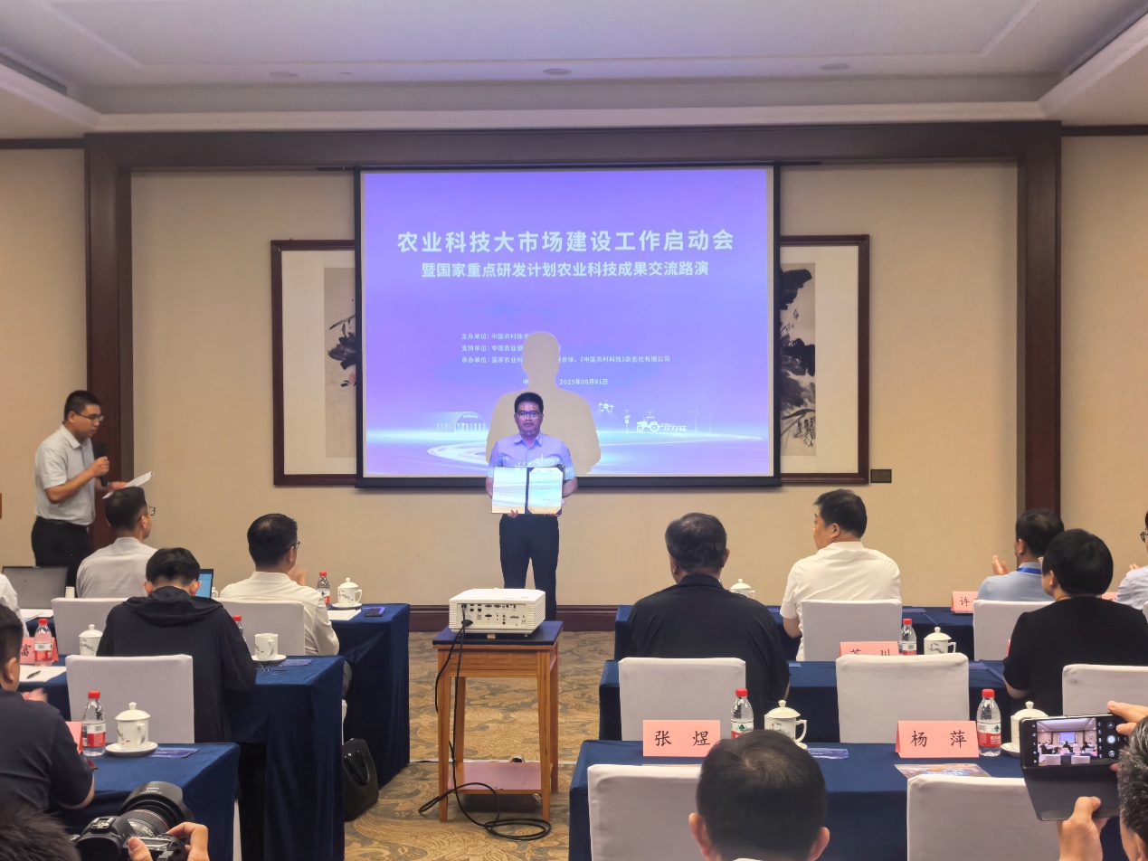 2025年8月1日,由农业农村部中国农村技术开发中心、国家农业科技创新投资联合体等单位联合举办的“农业科技大市场建设工作启动会暨国家重点研发计划农业科技成果交流路演”在北京举行。该活动旨在为构建全国农业科技大市场转化服务体系,加快国家重点研发计划及农业领域优势科技成果转化应用,推动创新链和产业链无缝对接。农业农村部科学技术司、中国农村技术开发中心、科技部新质生产力促进中心、工信部火炬高技术产业开发中心相关领导出席活动并讲话。
