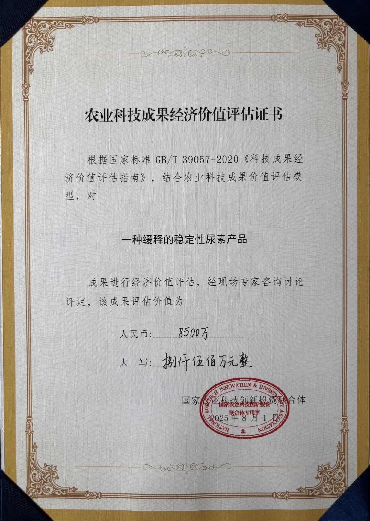 缓释的稳定性尿素采用新型抑制剂、保护剂等生产而成,相比于普通尿素水解高峰延缓10~15天,肥效期由普通尿素的60天左右延长到120天;协调养分释放与作物生长需求,氮肥利用率提高20%以上,作物产量提升10%~23%,满足多种大田作物一季生长的需要,肥料源温室气体排放量减少40%以上,实现了肥料产业的绿色转型。
