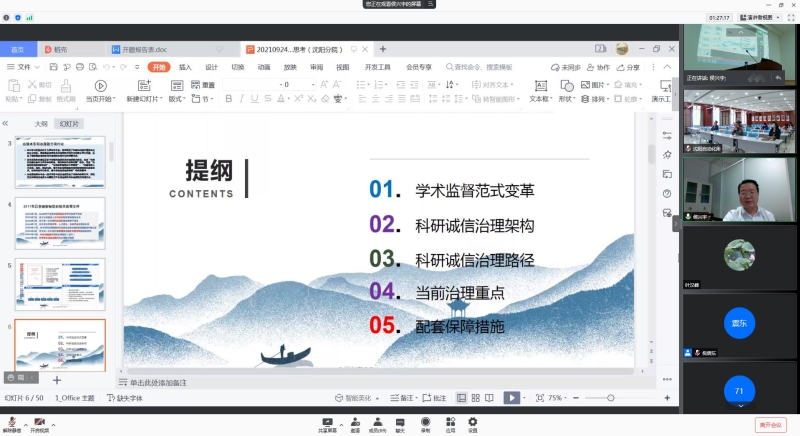 2021年9月24日,沈阳分院联合沈阳应用生态研究所举办分院系统单位弘扬科学家精神和科研诚信建设报告会,会议邀请中国科学院院士、金属研究所李依依研究员、北京师范大学副教授印波、中国科学院科研诚信办公室主任侯兴宇作报告。沈阳应用生态研究所设主会场,沈阳分院和系统各单位设视频分会场,系统各单位科研诚信建设分管领导、科研诚信建设相关处室负责人、科研诚信专员、支部书记、部分科研人员和研究生500余人参会。