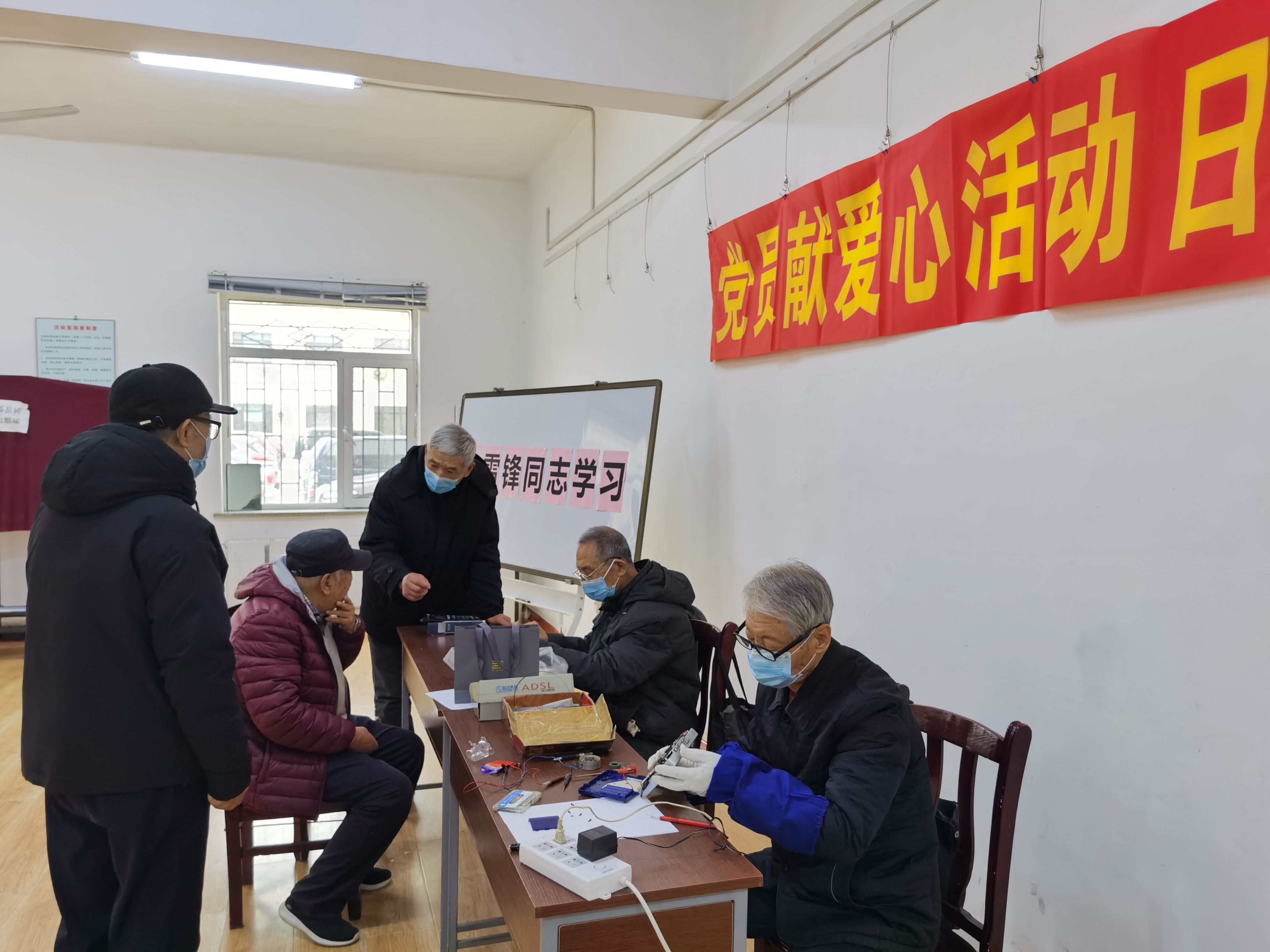 为喜迎建党100周年,纪念毛主席题词“向雷锋同志学习”58周年,3月5日,退休第二党支部开展了党员献爱心活动,特邀2位老党员尹昭华、聂绍斌同志为大家维修小型家用电器。党委书记金昌杰、党群办主任胡志斌、退休第二党支部书记马学军、副书记袁志文等参加了此次活动。