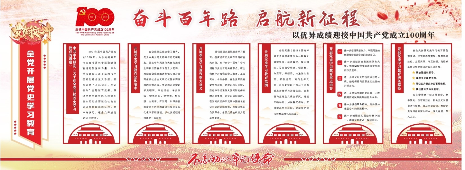 2021年是中国共产党成立100周年。为从党的百年伟大奋斗历程中汲取继续前进的智慧和力量,深入学习贯彻习近平新时代中国特色社会主义思想,巩固深化“不忘初心、牢记使命”主题教育成果,激励全党全国各族人民满怀信心迈进全面建设社会主义现代化国家新征程,党中央决定,在全党开展党史学习教育。