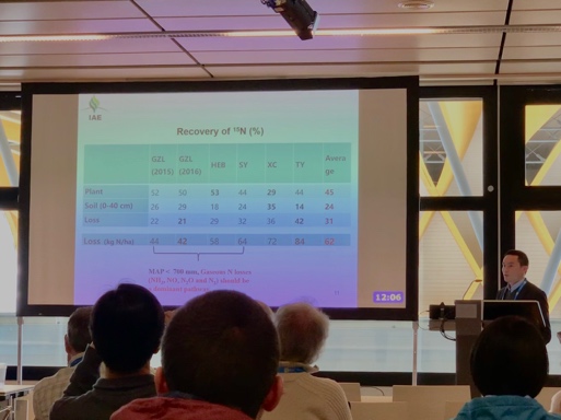 欧洲地球科学联盟(EGU)会议于201947日至412日在奥地利维也纳国际会议中心成功举办。沈阳应用生态研究所稳定同位素生态学组的方运霆研究员、Geshere Abdisa Gurmesa博士后、于浩明博士研究生参加了本次EGU大会并分别做了口头报告。方运霆研究员的报告题目为“Fates of fertilizer nitrogen and gaseous N loss in maize fields in China”,报告介绍了利用15N标记技术和全自动气态氮检测系统对氮肥在农田中的去向和气态氮损失的研究。此外,博士后Geshere Abdisa Gurmesa围绕两种无机氮沉降在森林中的去向做了题目为“Fate of atmospherically deposited NH4+ and NO3- in two temperate forests in China: temporal pattern and redistribution”的口头报告;博士研究生于浩明围绕森林土壤N2ON2释放对增温的响应做了题为“Temperature Sensitivity of N2O and N2 Emissions from Ten Forest Soils“的口头报告。