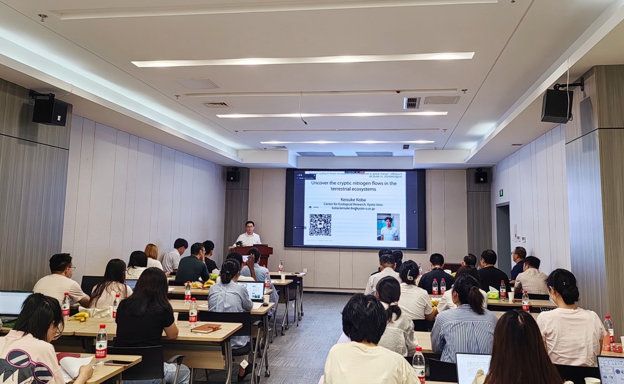Keisuke Koba教授于9月3日上午进行了学术报告,方运霆研究员、康荣华研究员、吴迪研究员及所内其他青年科研人员、在读研究生等60余人参加本次学术研讨会。他以“Uncover the cryptic nitrogen flows in the terrestrial ecosystems”为题,基于氮氧稳定同位素自然丰度技术,对日本的森林生态系统进行了深入研究,详细解析了森林生态系统中的氮循环过程,及其对气候、生物地球化学与自然环境之间复杂相互作用的响应,激发了参会者的热烈讨论。此外,天津大学刘学炎团队、中国科学院亚热带农业生态研究所李德军团队、中国科学院华南植物园的鲁显楷团队和郑棉海团队成员,共做15场学术报告,涵盖森林生态、土壤微生物和生物多样性等多个研究方向。这些报告不仅展示了他们的研究成果,也为参会者提供了良好的交流平台,促进了不同学科之间的交流合作。