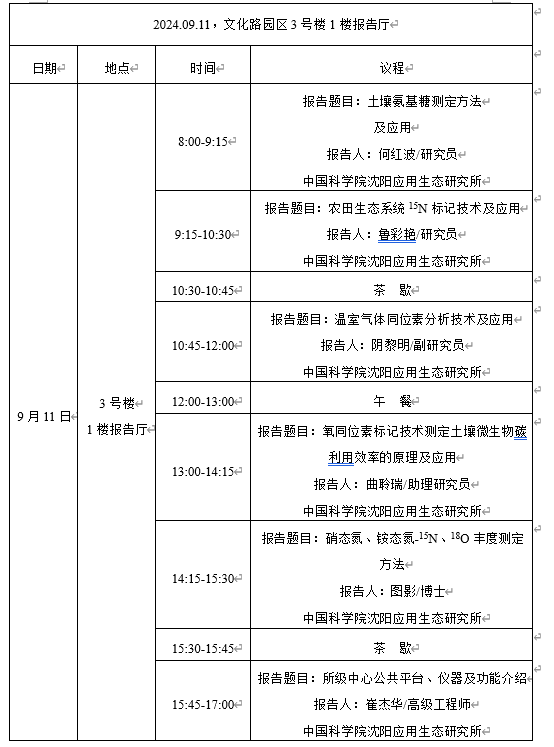 2.地点:中国科学院沈阳应用生态研究所文化路园区,3号楼1楼报告厅