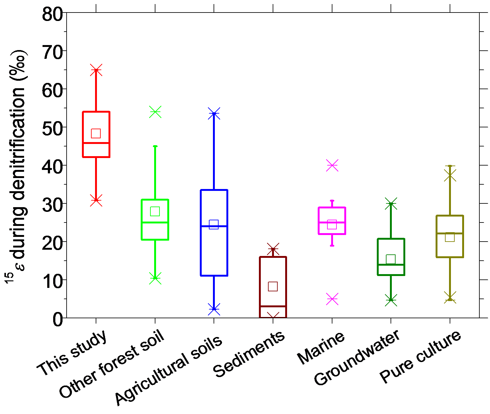 以上研究成果以“High nitrogen isotope fractionation of nitrate during denitrification in four forest soils and its implications for denitrification rate estimates”为题发表在Science of the Total Environment期刊(2018)。相关工作得到了中国国家重点研发项目、中科院先导专项(B)、国家基金委、中科院重点科技前沿项目和中国科学院热带森林生态学重点实验室开放课题的支持。