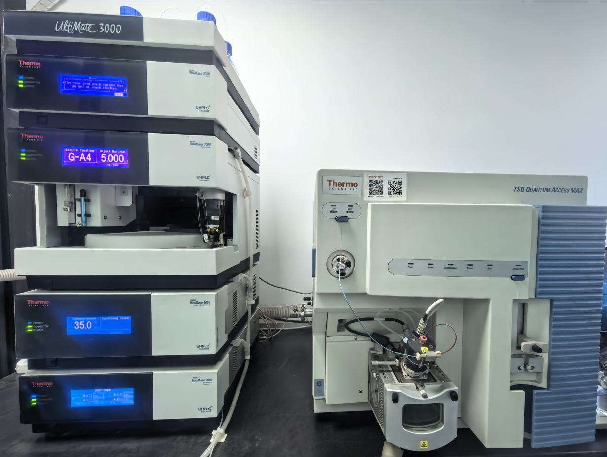 | 仪器配置: | 二元高压梯度混合泵、ESI源和APCI源、四极杆与高分辨Orbitrap串联质谱分析器 |