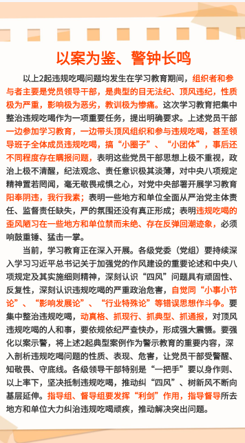 中央层面深入贯彻中央八项规定精神学习教育工作专班、中央纪委办公厅公开通报魏栓师等人违规吃喝严重违反中央八项规定精神问题