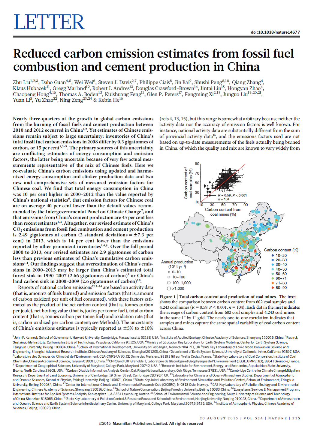 我组在碳排放核算与低碳发展政策领域研究取得突破性进展