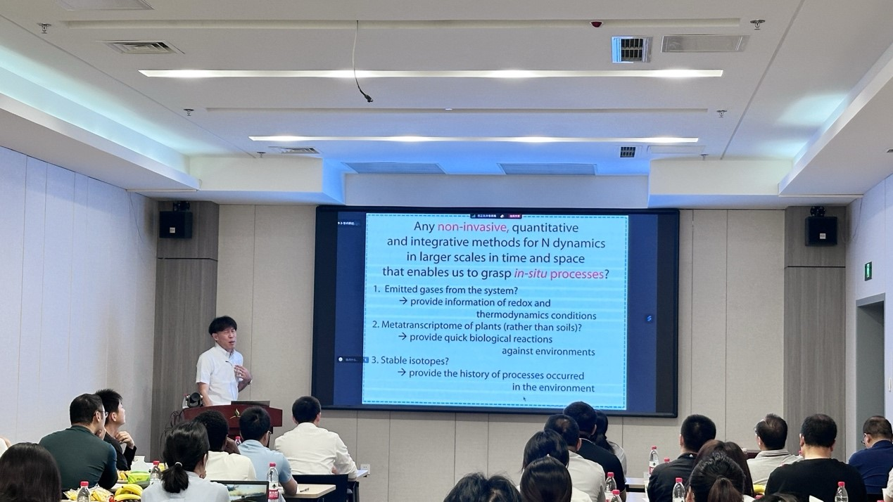 Keisuke Koba教授于9月3日上午进行了学术报告,我室方运霆研究员、康荣华研究员、吴迪研究员及所内其他青年科研人员、在读研究生等60余人参加本次学术研讨会。他以“Uncover the cryptic nitrogen flows in the terrestrial ecosystems”为题,基于氮氧稳定同位素自然丰度技术,对日本的森林生态系统进行了深入研究,详细解析了森林生态系统中的氮循环过程,及其对气候、生物地球化学与自然环境之间复杂相互作用的响应,激发了参会者的热烈讨论。此外,天津大学刘学炎团队、中国科学院亚热带农业生态研究所李德军团队、中国科学院华南植物园的鲁显楷团队和郑棉海团队成员,共做15场学术报告,涵盖森林生态、土壤微生物和生物多样性等多个研究方向。这些报告不仅展示了他们的研究成果,也为参会者提供了良好的交流平台,促进了不同学科之间的交流合作。