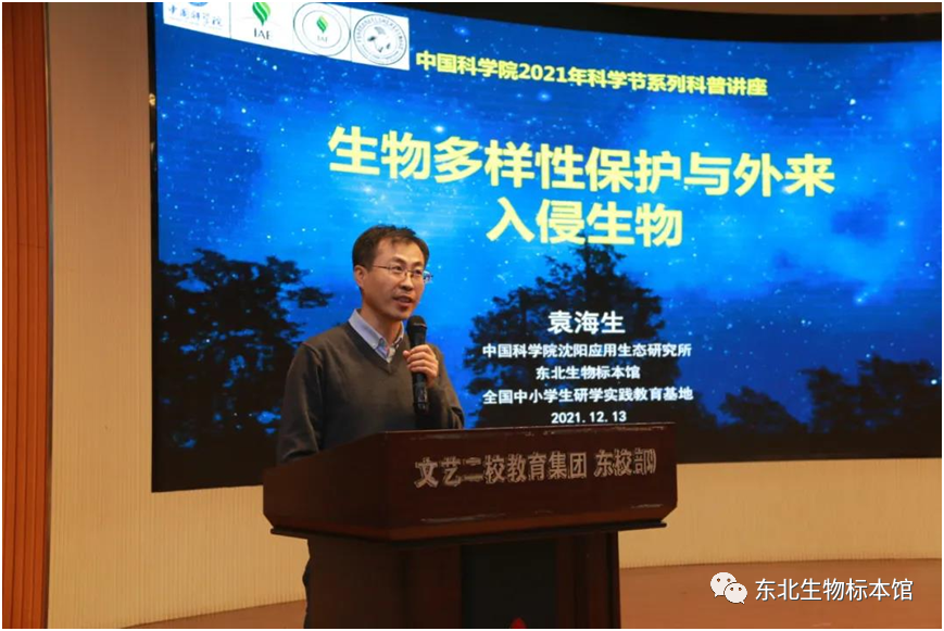 我室东北生物标本馆是辽宁省中小学生研学实践教育基地,为迎接科学节、贯彻实施“双减”政策,我馆于12月开展了“科学家进校园”科普活动。中国科学院沈阳应用生态研究所研究员、博士生导师、东北生物标本馆馆长袁海生,分别于12月1日和13日,在文艺二校教育集团主校和东校部,为4至6年级四百余名学生,带来两场生动有趣的科普报告。
