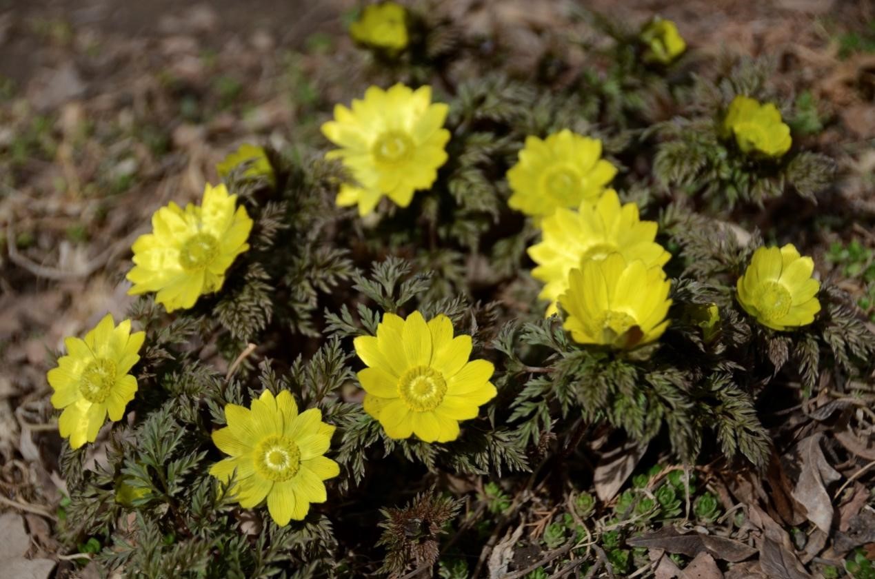 说到北方的“报春使者”,侧金盏花绝对当仁不让。冰雪还未完全消融,就能在林下看到它的身影。它是毛茛科(Ranunculaceae)侧金盏花属(Adonis)植物。相传Adonis是古希腊神话中令爱神阿佛洛狄特(Aphrodite)和冥后珀耳赛福涅(Persephone)神魂颠倒的美少年,以Adonis来命名,足可见侧金盏花的貌美。不过,它初时只是一个个其貌不扬的花苞,藏在落叶堆里。等侧金盏花准备好了,才会在阳光明媚的日子慢慢绽放,一小簇一小簇,在林下像一个个小太阳,非常耀眼。