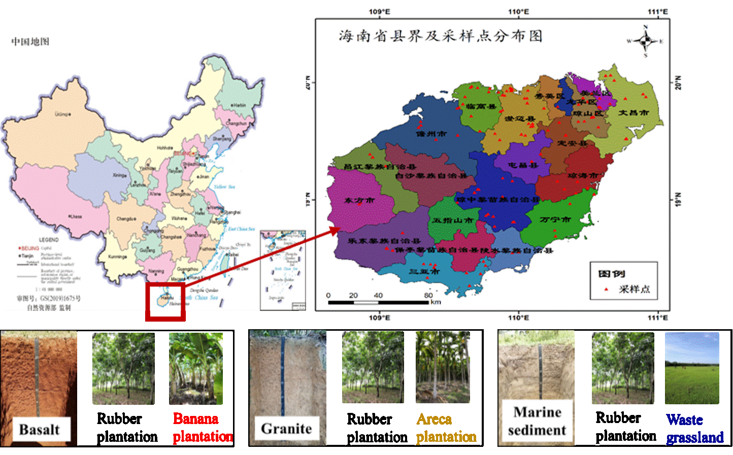 (1)揭示了不同母质土壤碳氮磷化学计量关系的主控因子。对海南岛橡胶园不同母质土壤的研究表明,不同母质土壤全量和速效土壤碳氮和氮磷比差异显著。玄武岩母质土壤全磷含量最高,总氮磷比最低。然而,由于玄武岩母质土壤的速效氮含量较高,其速效氮磷比显著高于海相沉积物母质土壤。表明橡胶园玄武岩母质土壤磷的有效性较低,海相沉积物发育土壤有效氮相对缺乏,建议玄武岩母质土壤应提高磷的有效性,并为海相沉积物土壤补充速效氮,以平衡海南岛橡胶园的养分供应。上述研究成果以Soil total and available C: N: P stoichiometry among different parent material soil profiles in rubber plantations of Hainan Island, China为题于2024年1月发表在 Geoderma Regional期刊。