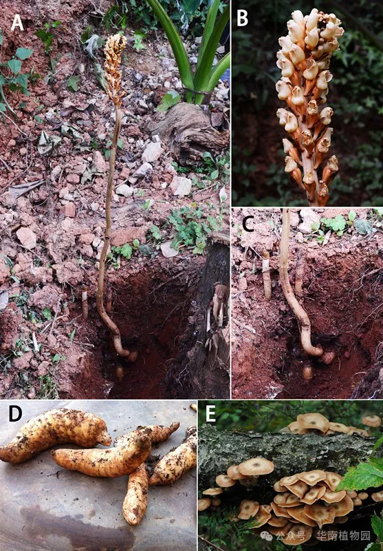 天麻堪称植物界的“反套路专家”。它摒弃常规植物的生存模式,转而与森林中的分解者——蜜环菌结成“战略同盟”。蜜环菌以分解枯木为生,而天麻则化身“菌丝收割者”,直接消化其菌丝获取营养,形成独特的“腐生-寄生”双轨制生存模式。科学家将其定义为“真菌营养型寄生植物”,这一机制使其无需光合作用或根系吸收,即可“坐享其成”。