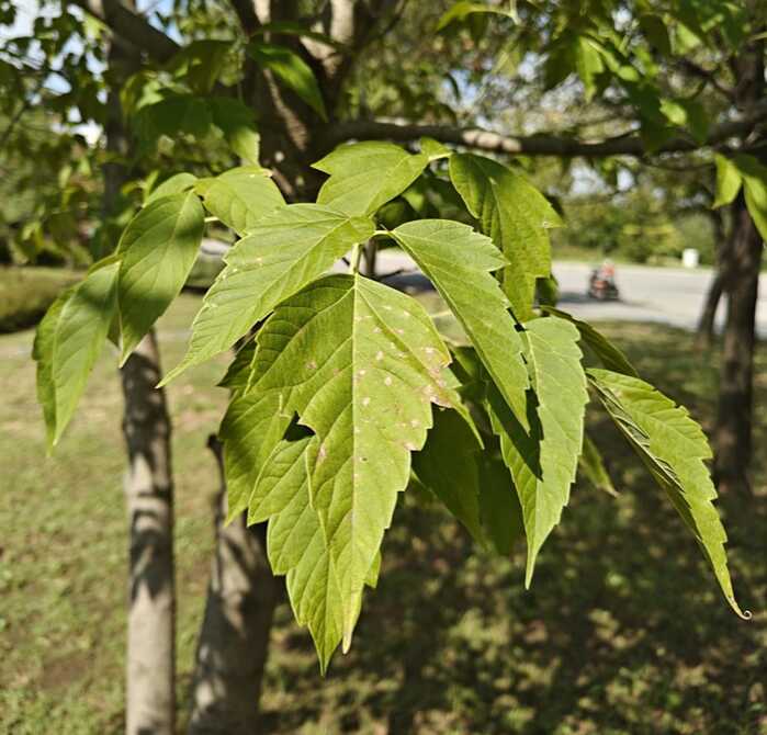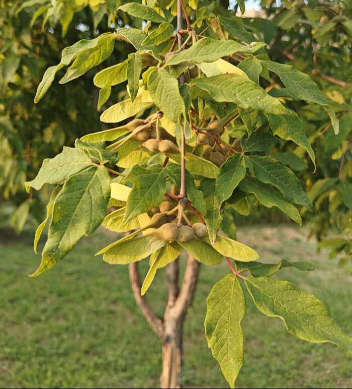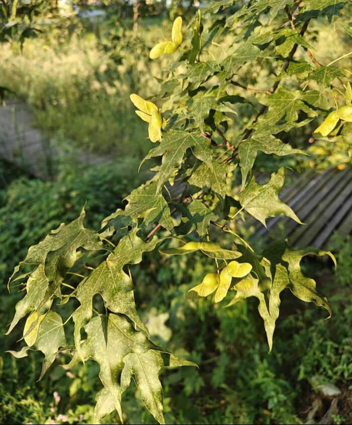 槭属的落叶种类,叶子在秋季会变为美丽的红色,其独特的双翅果在冬季仍会悬挂在树上,十分美观。