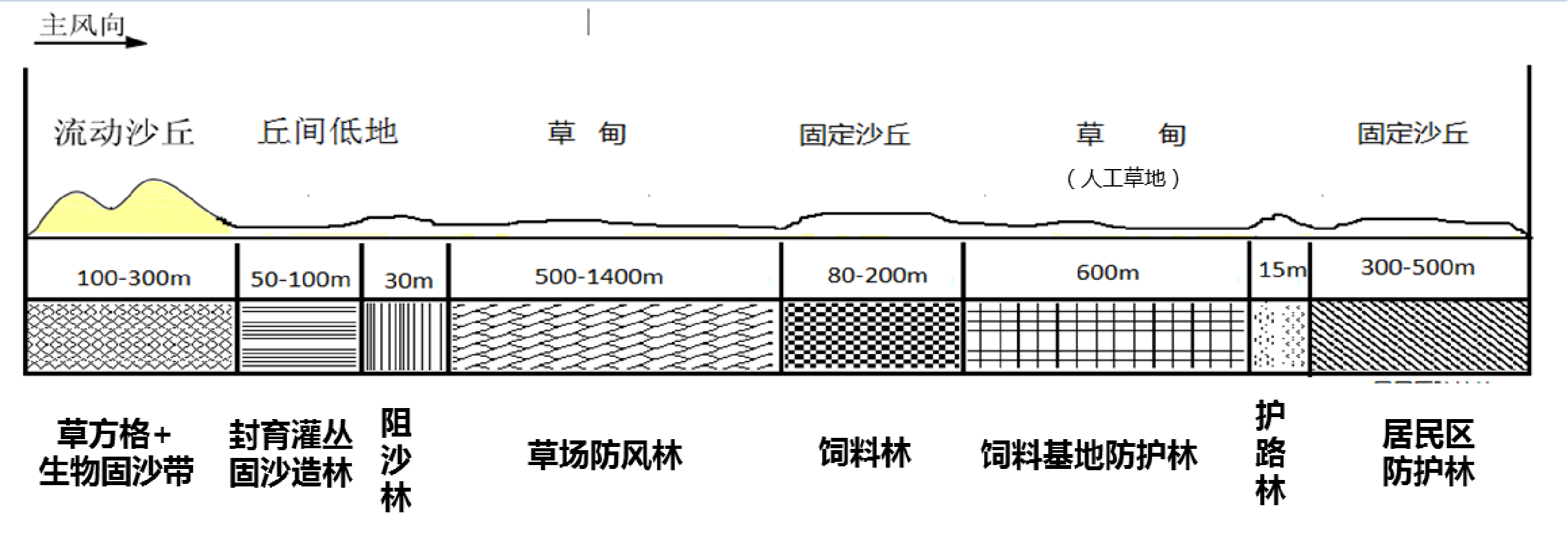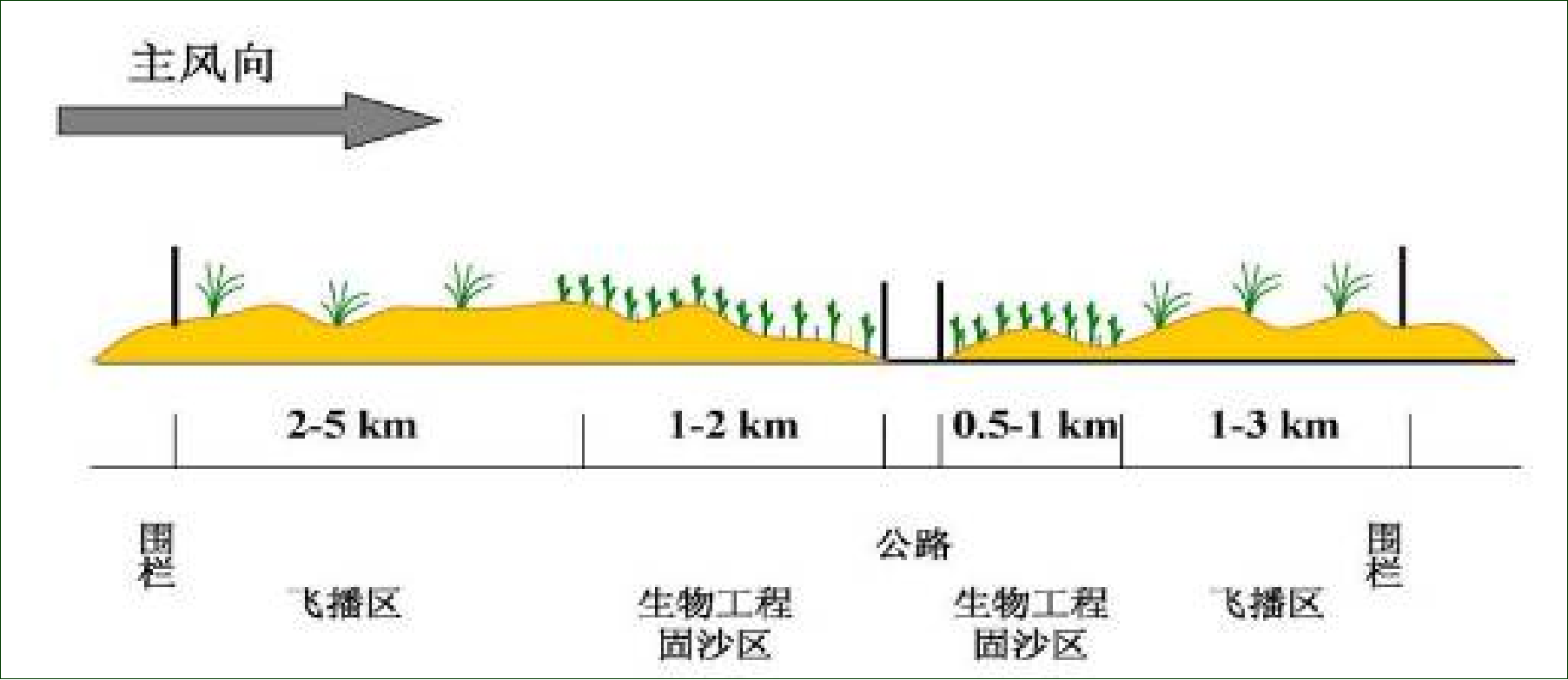 流动沙地“生物固沙+围栏封育+飞播”模式