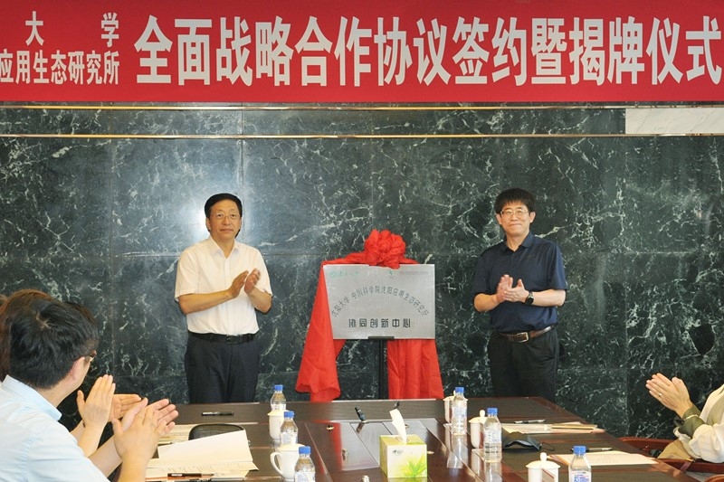 7月8日下午,中国科学院沈阳应用生态研究所与沈阳大学全面战略合作协议签约暨揭牌仪式在沈阳大学举行。沈阳生态所所长朱教君,沈阳大学党委书记苏文捷、校长赵彦志出席签约仪式。沈阳生态所副所长方运霆、党委副书记兼纪委书记郝欣、副所长卓君臣,沈阳大学副校长原忠虎、王淑梅、陆庆轩及双方相关职能部门(学院)主要负责人参加签约仪式。