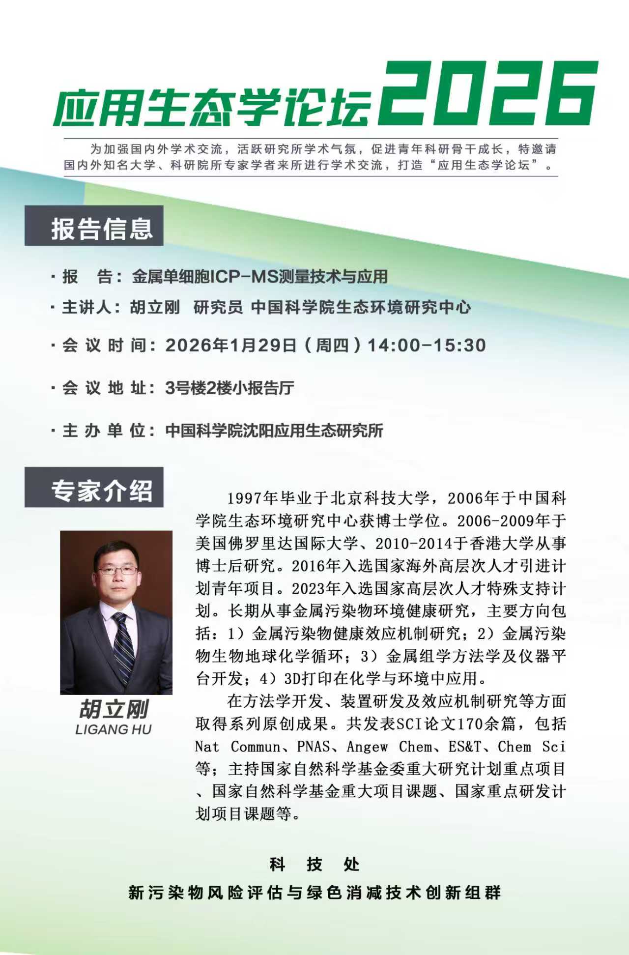 为进一步加强国内外学术交流,扩展科研人员知识面,促进青年科研骨干成长,提高研究所人员整体科学研究水平,2026年 “应用生态学论坛”系列活动全新升级。欢迎广大科研工作人员及研究生积极参与!