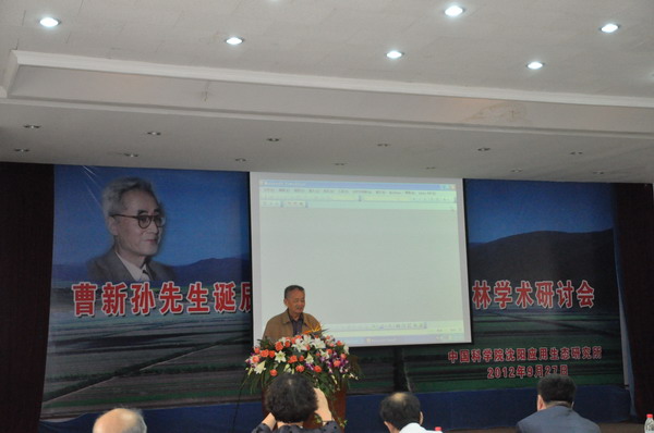 为了缅怀我国著名林学家、森林生态学家、农田防护林学科创始人曹新孙先生,学习和继承他的宝贵思想和科研精神,我所于9月27日隆重举办“曹新孙先生诞辰100周年纪念暨防护林学术研讨会”。受邀出席此次研讨会的来宾有中国生态学会理事长、中国林业科学研究院副院长刘世荣研究员,中国林学会副秘书长李岩泉研究员,东北林业大学王政权教授,辽宁省林业厅副厅长史广海教授,沈阳农业大学林学院院长周永斌教授,相关林业研究机构和高校的代表,以及曹新孙先生的学生代表、同事和家人等。我所领导班子、全体职工、研究生以及党员参加了此次研讨会。大会由党委书记姬兰柱主持。韩兴国所长代表研究所向大会致辞,简要介绍了曹新孙先生的生平事迹。