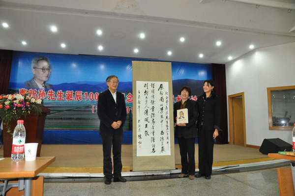 随后,曹新孙先生的女儿在发言中寄托了对父亲深深的思念之情,韩兴国所长代表研究所向曹新孙先生的家人赠送了此次大会的纪念出版物——《曹新孙文集》。我所关德新研究员宣读了曹新孙先生的学生代表致信纪念;我所研究生代表在发言中表示要努力向曹新孙先生等老一辈科学家学习。朱教君研究员代表新一代传承防护林研究的科学家做了“曹新孙先生与防护林学”报告,介绍了多年以来我所在防护林领域所取得成绩及目前正在开展的工作。