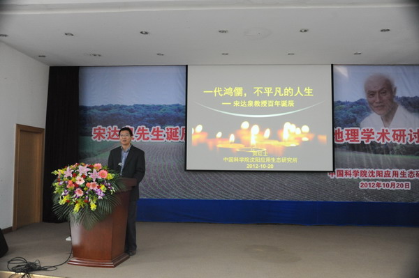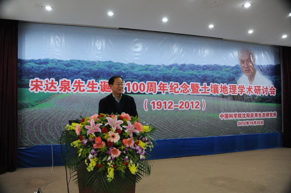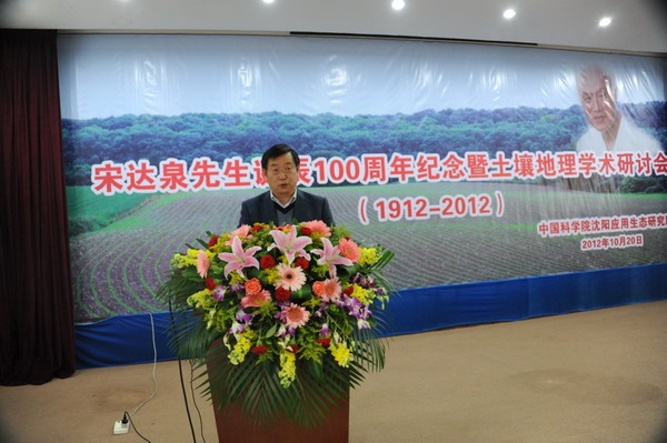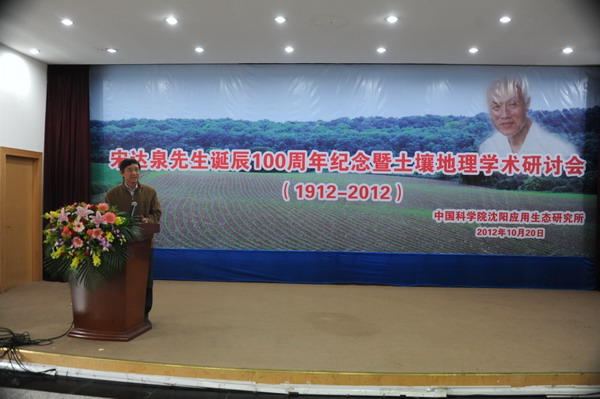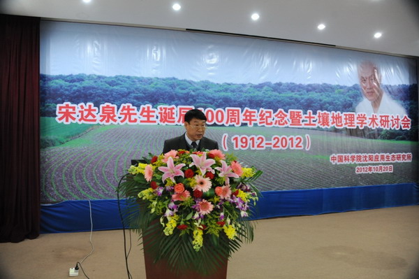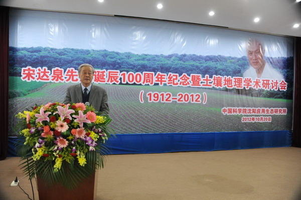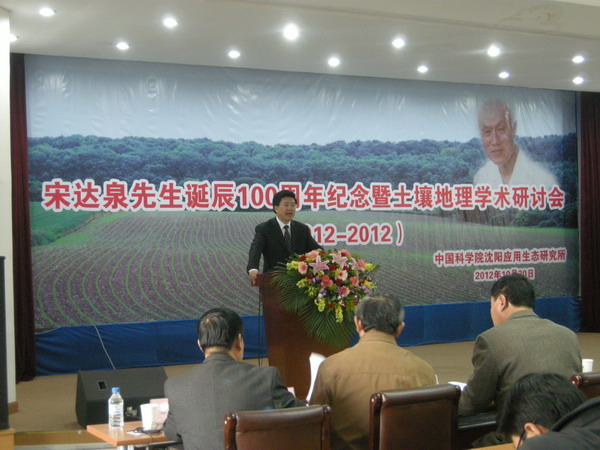 为了深切缅怀我国著名土壤与资源环境学家、中国科学院林业土壤研究所(现中国科学院沈阳应用生态研究所)创建人之一、原中国土壤学会理事长宋达泉先生,牢记他为我国土壤和资源环境科学事业所作出的杰出贡献,学习和传承他的高尚品德和科研精神,中国科学院沈阳应用生态研究所于2012年10月20日隆重举办了“宋达泉先生诞辰100周年纪念暨土壤地理学术研讨会”。中国科学院地理科学与资源研究所、中国科学院南京土壤研究所、中国科学院研究生院、沈阳农业大学等单位有关领导,宋达泉先生的学生和亲属,中国科学院沈阳应用生态研究所全体职工、老同志、研究生及有关人士出席了大会。