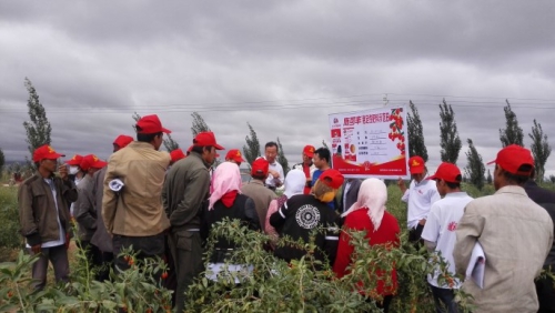 虽然观摩会期间,正赶上中元节,但农户学习热情高涨,抽出时间来到示范田现场,认真聆听专家们的讲解。甘肃地区农民施肥习惯于用尿素和二铵,针对这一传统施肥观念,孙毅研究员就稳定性肥料技术原理、优势及多年来我所与施可丰公司在稳定性肥料研究方面做出的成绩进行了详细的介绍;冯守疆研究员则就多年来施可丰稳定性肥料在甘肃地区各种作物上的应用效果进行了介绍,同时就稳定性肥料的应用技术进行了详细的说明。通过现场调研,施可丰稳定性肥料应用效果明显:敦煌七里镇李家墩开展的葡萄试验示范,前期施用施可丰稳定性肥料黄金三安、后期追施硫基高钾肥料,葡萄长势良好,叶色浓绿,果实颗粒、着色均匀,亩产到5000斤。酒泉金塔县生地湾农场的洋葱施用施可丰稳定性肥料套餐肥,洋葱亩产高达8吨。白银靖远县靖安乡的枸杞施用施可丰稳定性肥料套餐肥,与常规施肥相比,每亩增产达100多斤。施用升级的稳定性肥料新配方的玉米同样表现不俗,长势整齐、籽粒饱满不秃顶,植株粗壮抗倒伏,亩产高达2000斤。