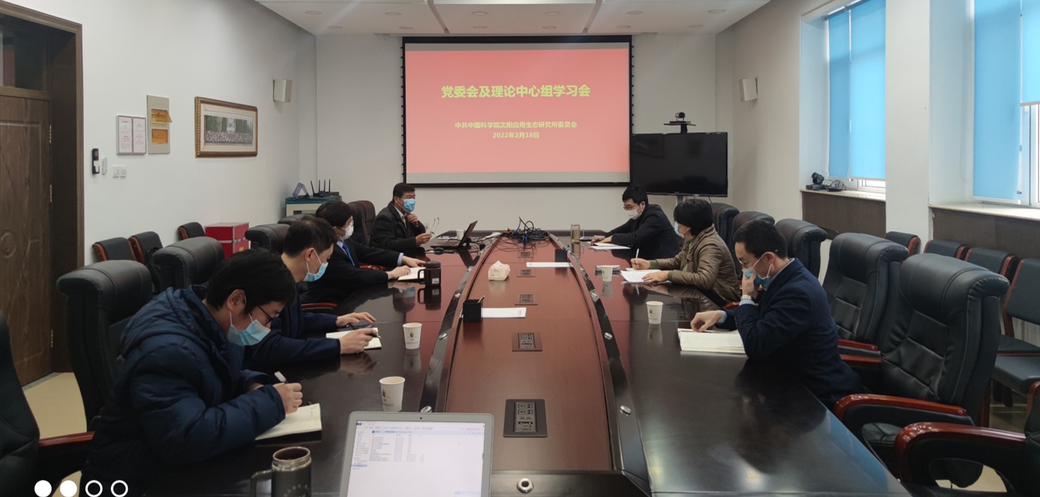 2022年2月18日,沈阳生态所党委召开理论学习中心组会,重点学习了习近平在省部级主要领导干部学习贯彻党的十九届六中全会精神专题研讨班上重要讲话精神、习近平在十九届中央纪委六次全会上重要讲话精神2022-02-19