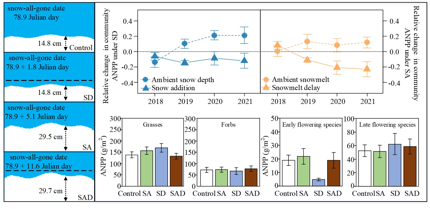 在干旱半干旱地区,冬季降雪是植被返青期的主要水分来源,而且积雪融化是生长季开始的重要驱动因素。在全球气温和降雨变化背景下,冬季降雪量、积雪深度和积雪融化时间正在发生变化,这势必会改变早春土壤温度和...2024-03-13